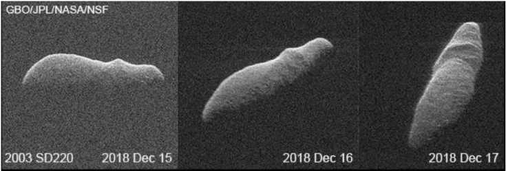 Example: GSSR DSS-14-GBT (X bistatic) 2003 SD220 > 2 km long, rotation period ~12 days, resolution is 3.75 m/pixel